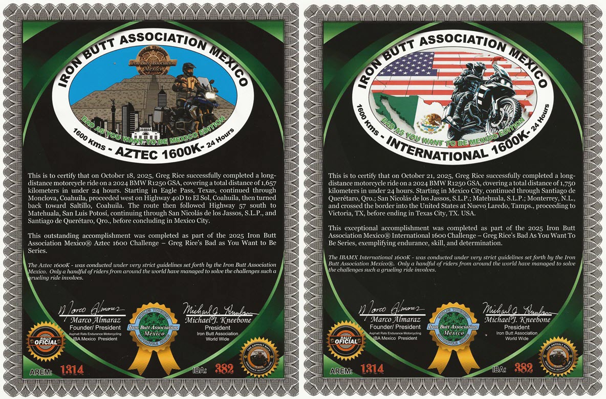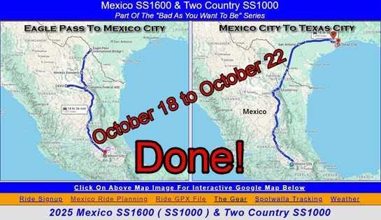 My next planned ride is a Mexico SS1000 starting in Laredo, TX and making a loop in Mexico and ending in Eagle Pass, TX.