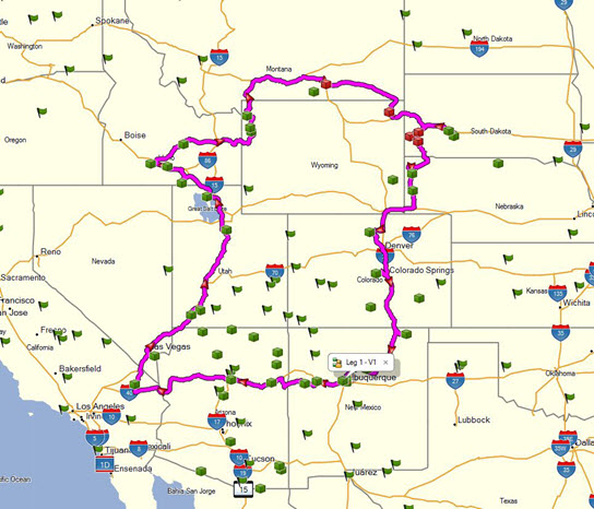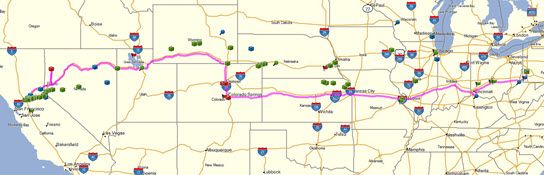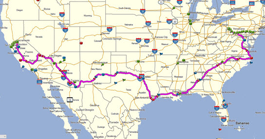 I decided on a more conservative route that should give me the point needed to be in the top 10 but not have to go to Alaska. I rode south to southern California picking up a good number of bonuses and then west over the mountains to Santa Monica pier which was another bonus. I then rode up the center of California on I-5 towards San Jose and the famous bonus Alice's Restaurant. After scoring Alice's Restaurant I had been riding for about a day and a half so I took my rest bonus in San Jose.