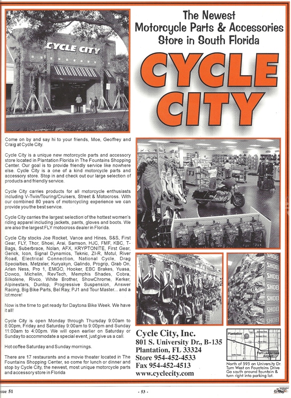 At the bottom are photos from the motorcycle accessories store I used to own in south Florida, Cycle City.