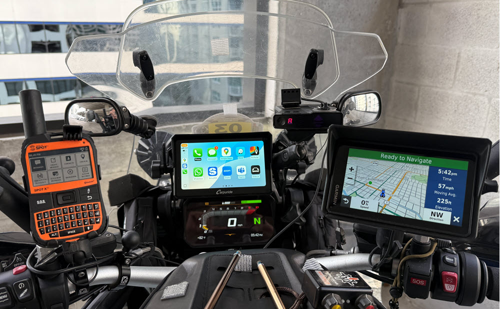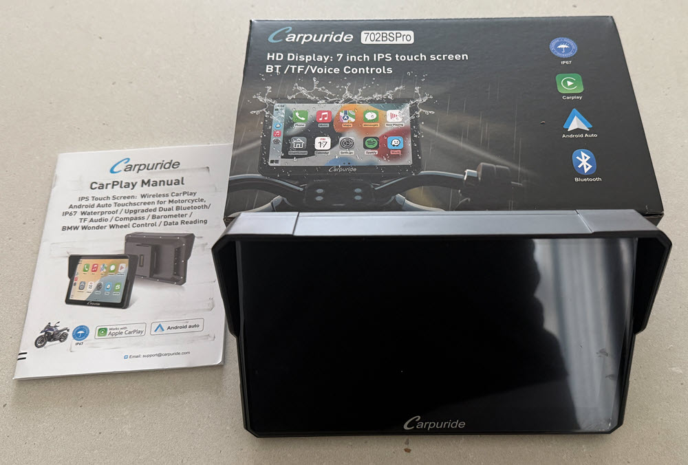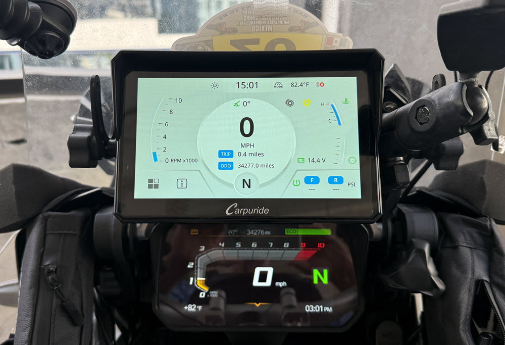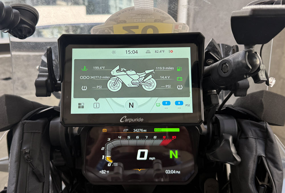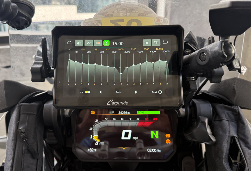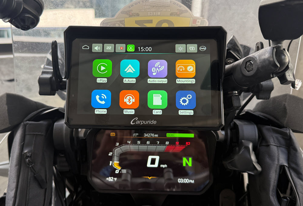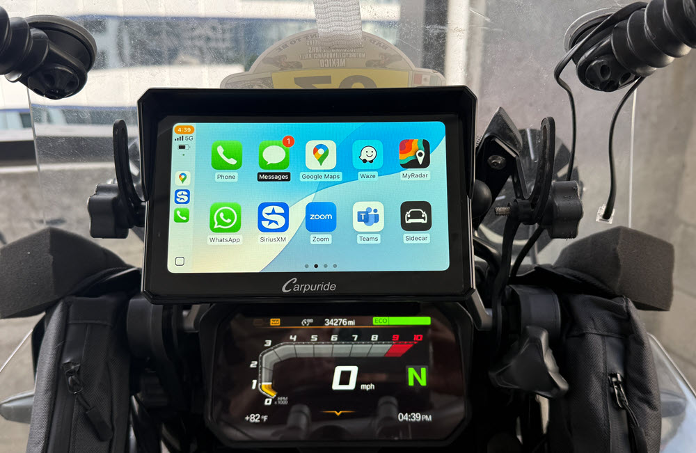 Testing / Review Of Carpuride 702BS Pro I decided to go the CarPlay route and I purchased the Carpuride 702BS Pro 7 inch device. UPDATE: I now have over 12,000 miles of use of my Carpuride 702BS CarPlay device including a ride to Mexico City and back. It has worked great, the only issue has been two restarts during that time. I have ridden in heavy rain, 39 degrees and 100 degrees and the Carpuride just kept working. During my ride to the End Of The Road I blew out my front facing camera on my iPhone 14 pro, unfortunatly this is a common issue with iPhones on motorcycles. I was still able to use my selfi camera and take photos during the ride. This happened to me a little over 2 years ago also. When I called Apple one of the questions they asked me was the phone on a motorcycle. So I had to get a new iPhone and I did not want the same thing to happen again so I decided to go the CarPlay device route and not mount my phone on the handlebar. I have been using large Garmin GPS’s ( Dezl 770 & RV 890 ) for the past 13 years and really liked them as they were large easy to read and you could display the highway milemarker. They were not waterproof but I was able to make them water resistant. On my ride back home form the End Of The Road we encountered a lot of heavy rain in Guatemala that took out one of the audio channels on my RV 890 so I decided to replace it since it was 3 years old and had over 120,000 miles on it. I did some research into what would be a good choice for a CarPlay device for my BMW GSA. I found there was 2 good options Carpuide and Chigee that had devices that worked with the BMW NAV6 cradle and the wonder wheel. I decided to purchase the Carpuride 702BS Pro and I was able to find a good discount and purchased it for $290 ( BIGROCKMOTO (-$125.97) ). The reasons I chose the Carpuride one is the 7 inch screen, mounts in the BMW NAV 6 cradle so it was a easy installation and works with the BMW GSA wonder wheel. Chigee may be a better device but it was only a 5 inch display which is a little smaller than I wanted and it cost $150 more, they do have a 6 inch display coming out in the summer but I don’t like to wait. Some good features of the Carpuride 702BS Pro that I like is it is glove friendly, built in sun visor, big 7 inch display, light sensor so it auto dims when there is low light and the plug-n-play with the BMW cradle. So I will been doing some testing on the Carpuride 702BS Pro for the next couple months and see if it can stand up to hard LD riding. I don't think I will take much advantage of the Carpuride 702BS integration with the GSA's wonder wheel since I keep my TFT screen on the screen that display the TPMS and other information that is important to me so I do not need to switch to that information screen on the Carpuride device. When I had a Nav 6 GPS I never really used the wonder wheel to control the Nav 6 either. I pretty much always used the touch screen to control the GPS. One of the things I found after installing the Carpuride 702BS in the BMW nav cradle was that I realized that the reach to the touch screen was pretty far and I like to run Waze and with all of the notifications from Waze I found it hard to respond to those notifications because I have devices on both handlebars and a tank bag that made the reach to the Carpuride device a little difficult. So I decided to remove the BMW nav cradle from the bar above the TFT screen and add a one inch ram ball to the bar. I then added a one inch ram ball to the back of the BMW nav cradle so this way I could use a six inch ram arm to mount the BMW nav cradle closer to me and much easier to reach. I still use the BMW nav cradle to mount the Carpuride device in to take advantage of the power in the cradle to power the Carpuride device. I did have to reroute the wire to the BMW nav cradle so it would reach since I moved the cradle off of the bar above the TFT screen. I also always add a safety tether to all of my devices and sometimes I use a GoPro tether which is what I did for the Carpuride. You can see the photos below how I did it. Carpuride added over the air ( OTA ) firmware updates after I had purchased mine so I reached out to them to see if I could upgrade my Carpuride 702BS and they said yes and after confirming which device I had and what was the current firmware they sent me a I updated my Carpuride 702BS yesterday to add over the air ( OTA ) software updates, it was pretty easy once I did a little searching the internet because the instructions were not to detailed. Once I finished the firmware update to add OTA I found there was a couple updates available so I updated to the latest firmware. Some photos taken during the firmware update are below also showing where the micro sd card is inserted in the Carpuride. Now that I have the Carpuride 702BS mounted closer to me it feels more like having my phone and is much easier to use. The Carpuride 702BS works as advertised and is / has been waterproof. It is a nice easy to read screen and glove friendly. Before moving the Carpuride closer to me I tried using some stencils that were made for the type of screen the Carpuride has but they did not work consistently. So another benefit in moving the Carpuride closer to me is that I can easily reach it with my hand.