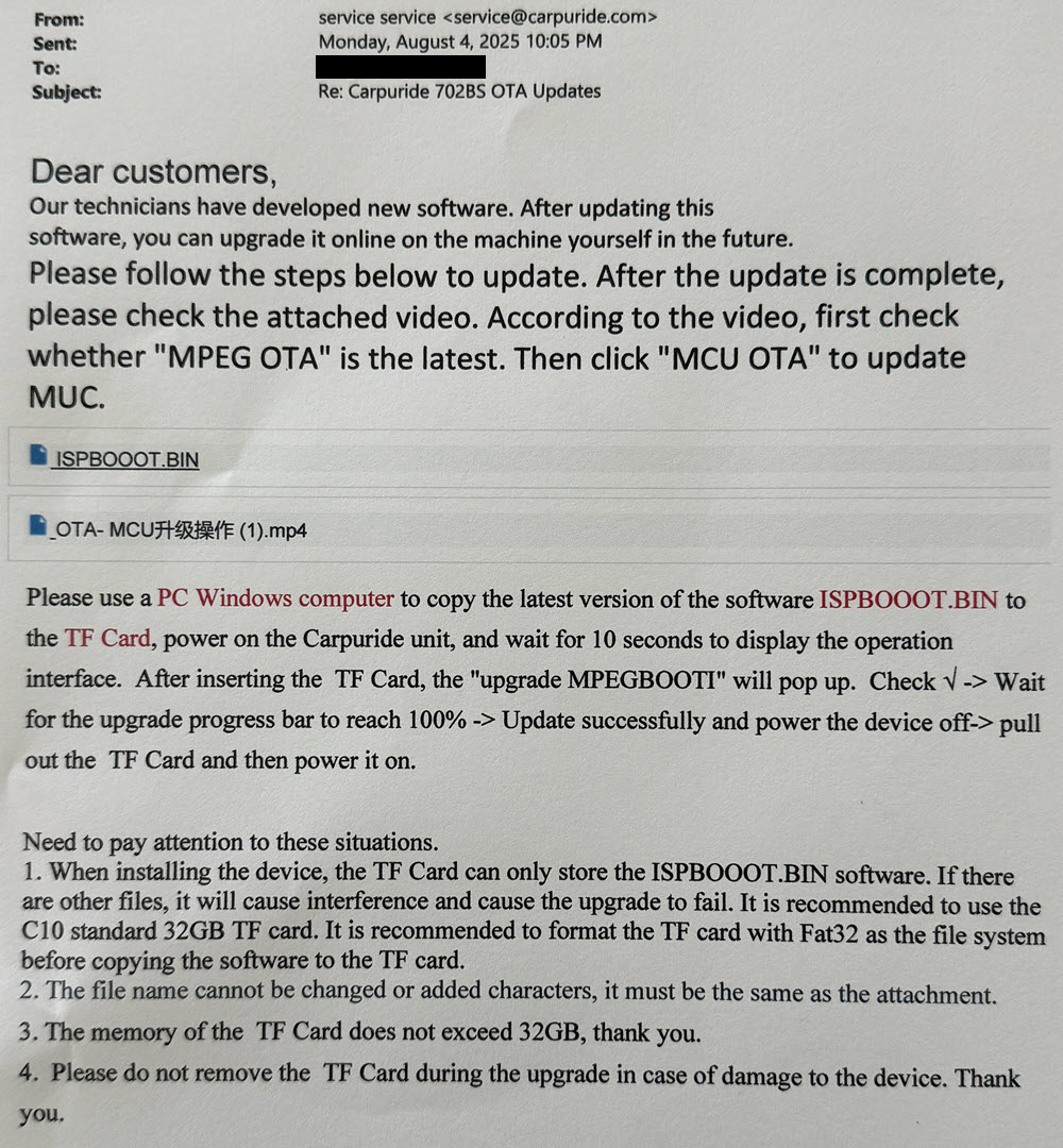 Carpuride 702BS Pro Software / Firmware Updates