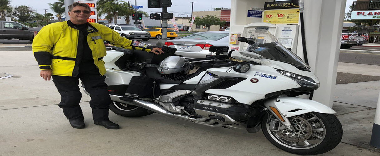 San Diego Beach to Jacksonville Beach I purchased a new 2018 Honda Gold Wing Tour DCT motorcycle in March of this year and I restarted my thinking about a Cannonball Run coast to coast ride right away. I wanted to see how fast I could complete the ride but knowing that the new Gold Wing has a speed limiter of 112 MPH I was pretty sure it would not be a record attempt ride. This ride like many of my previous rides is again more about endurance than speed. Yes, I did ride a little over the speed limit ( not as much as you may think ) but the most difficult part of the ride was being able to ride coast to coast nonstop. I do like to push the envelope on what I can do and I have always found that we as humans are more capable than we give ourselves credit for. The new Gold Wing really performed great in all conditions and I could not break it no matter how hard I tried. One of my objectives of this ride was to see how well the Gold Wing performed and how well it withstood being run hard all day and all night. On September 29, 2018 I attempted a 2,370 mile coast to coast ride starting in San Diego Ocean Beach riding to Jacksonville Beach. I completed the ride in 29 hours and 23 minutes. I rode pretty much nonstop except for gas and bio breaks. I had one 30 minute stop while I waited for some food at a truck stop. I had been planning this ride for a few years and I had a lot of planning into this ride. My original plan was to ride coast to coast to coast and try and pretty much ride nonstop in both directions. I had all of the panning in place and a friend, Dan Thaler, was going to ride with me. The day before, Wednesday, that we were leaving for our ride my work asked me to be in San Diego for the week following the ride to start a new contract. So my first thought was ok, we will attempt the coast to coast to coast ride arriving back home on Sunday evening and then I will fly back to San Diego on Monday morning so I bought a ticket to fly back and continued with our plans. We started the ride Thursday, September 20, 2018 at 3:00 AM in Jacksonville Beach as planned. On the ride out we were taking a little longer than I had hoped due to weather and lots of construction and as we neared the west coast I was thinking more and more how dumb it would be to ride to San Diego and turn around and ride back knowing I need to be back in San Diego 2 days later. I started thinking that if something happened on the return ride I may not make it back to San Diego on time and the work in San Diego was important as I was starting a new project that was going to extend my contract for another year. As we crossed the California state line I decided to stay in San Diego and I would ride back at the end of the week when the work was finished. We completed our coast to coast ride in 32 hours and 7 minutes which is a great time for riding across the country as not many people have been able to complete the ride in that short of time on a motorcycle. Of course I was thinking I could do better. I worked all week in San Diego while Dan continued his ride after a 7 hour layover in San Diego. Dan made it back to Jacksonville Beach in pretty quick time. My wife flew out to spend the week with me in San Diego to keep me company and she had never been to San Diego before and always heard how beautiful it was. Coast To Coast Ride PlanningI had a custom auxiliary fuel tank built by Boyd Welding ( great welder & great price ) that had a capacity of 4.8 gallons to go along with the stock 5.5 gallons of the 2018 Gold Wing that would give me a range of around 325 miles at highway speeds. After testing I felt this was not enough auxiliary fuel if I was running a little above the speed limit. ;) so I had another auxiliary fuel tank built by Boyd Welding that has a capacity of 5.7 gallons which gave me a total of 11.2 gallons ( under the Iron Butt Rally limit of 11.5 gallons ) and a range of around 350+ miles between fuel stops at a good speed. I needed better auxiliary lighting so I contacted Clearwater Lights and made arrangements to purchase the Sevina's LED lights with a total of 14,000 lumens that would really light up the road especially in the dark areas of the ride. I knew that these LED lights would come in handy in west Texas, New Mexico and Arizona and along the gulf coast where my ride planning had me in the middle of the night. I was able to connect their light controller to my high beam headlight switch so the Sevina LED lights would switch to 100% when I turned on the high beams. This was a big help in making enough light to ride at speed in the middle of the night along my route. Where there are many creatures that jump out in to the road. The new Gold Wing has built in navigation on a 7 inch screen and it also has for the first time on a motorcycle Apple CarPlay. Just before the start of our ride Apple released iOS 12 and that allowed the use of Google Maps and Waze with Apple CarPlay. I also mounted my Garmin Dezl 770 and Garmin BMW NAV 6 GPS's to assist me with route navigation and timings. I developed my route in Garmin Basecamp and loaded all of my GPS's and I also loaded the route in Google My Maps by importing a KML file. This would allow me to use Google Maps in Apple CarPlay during the ride and take advantage of the Google traffic and other notifications along the route. I also loaded all of my planned stops into Waze as favorites so I could use Waze on my ride and get notifications of debris in the road, parked vehicles on the shoulder and police along my route. I wear Aerostich gear, Darien Jacket and AD1 pants because they are really waterproof and provide great protection in the event something happens and this gear came in handy on both the ride to San Diego and the return coast to coast ride back to Jacksonville Beach as it rained damn hard on the ride to San Diego and it rained for about 200 miles on the return coast to coast ride back to Jacksonville Beach. I bought a new Valentine 1 radar detector